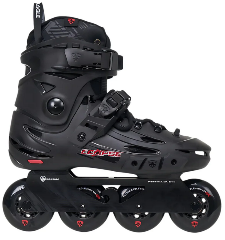 Combinados con un cuadro de aluminio mecanizado, ruedas de 80 mm (76 mm en tamaños más pequeños) y rodamientos súper rápidos, estos patines ofrecen velocidad, comodidad, soporte y maniobrabilidad a un precio excelente. Perfectos para patinaje marítimo, urbano, urbano y slalom, los patines Flying Eagle F5S Eclipse Black son una opción ideal para patinadores de todos los niveles.